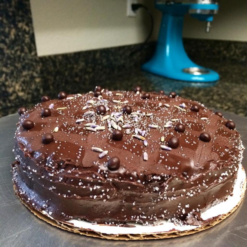 Lavender and chocolate, be friends. I made this cake for a farmer-herbalist friend who I knew would be into the floral-chocolate combo. And quite possibly, this cake marked the Electric Lady’s sophomore debut in my new living space – the Lady being that ecstatic blue KitchenAid in the background.